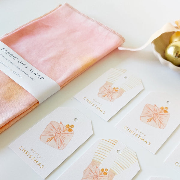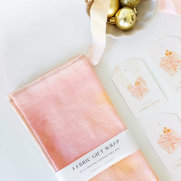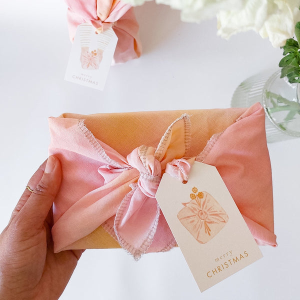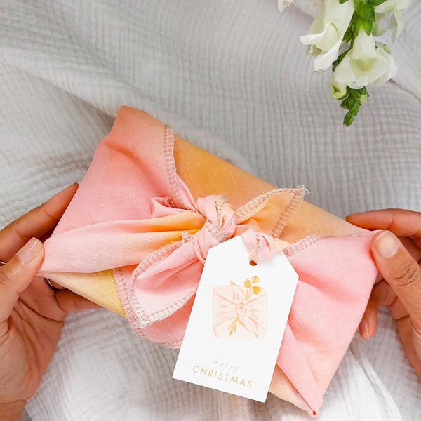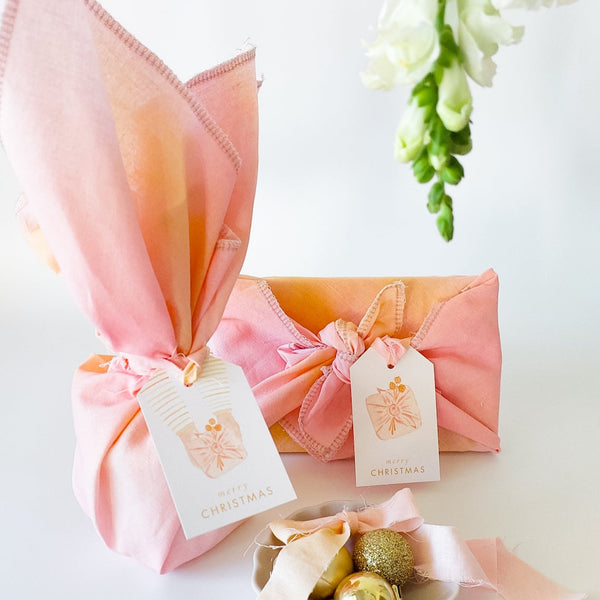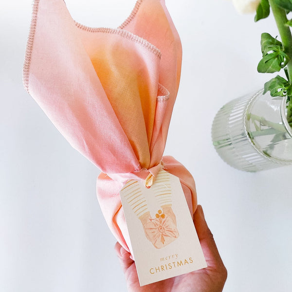 Hand dyed linen-blend fabric wraps in rose pink and lemon tones. Perfect as the gift that keeps on giving, and attach a Christmas gift tag to personalise it in style.