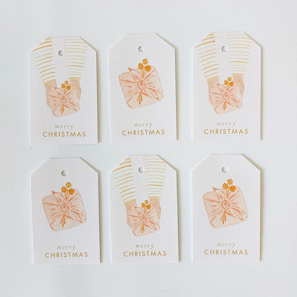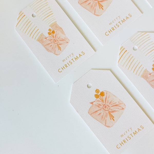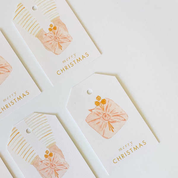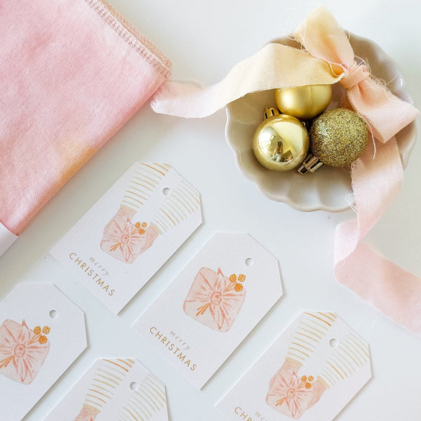 Printed on 280gsm textured white linen paper, each gift tag comes with hand dyed linen-blend fabric ribbon to add a touch of sophistication to your gifts.