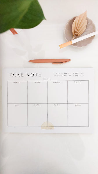 This undated weekly planner notepad is perfect as your desk paper companion or a family planner to plot and plan your week ahead so that you stay organised and carve out room for joyful, creative living.